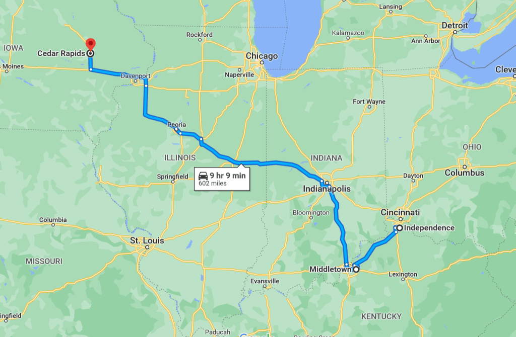 - Day 1: Louisville to Cedar Rapids