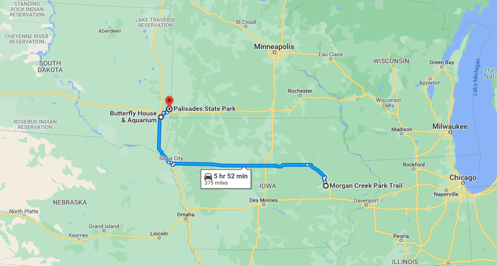 We stayed the night at Palisades State Park and went to bed pretty much right after we got there. Tomorrow we’re off to the Badlands and hopefully without much rain, which the NWS is calling for at the time of writing.