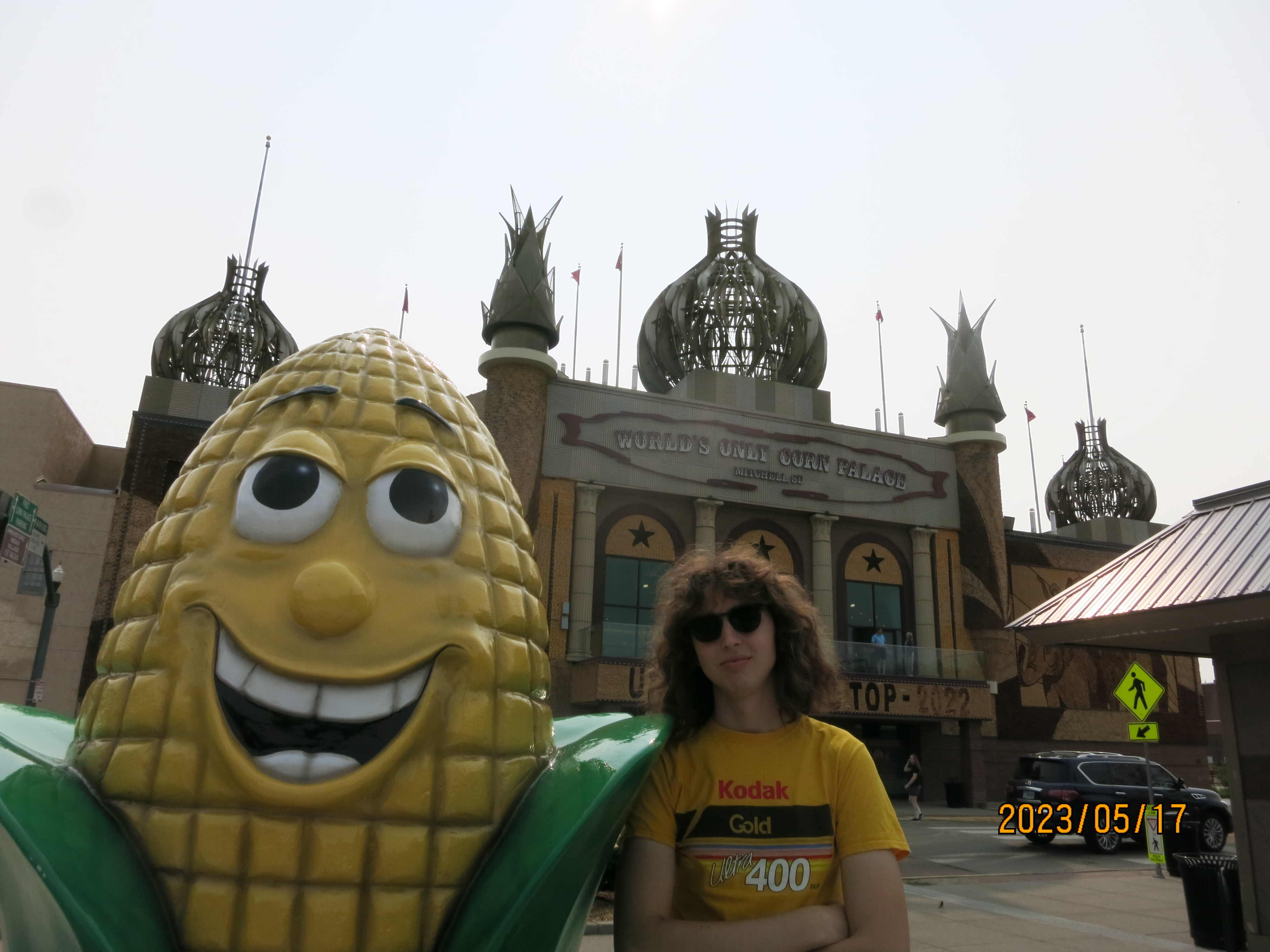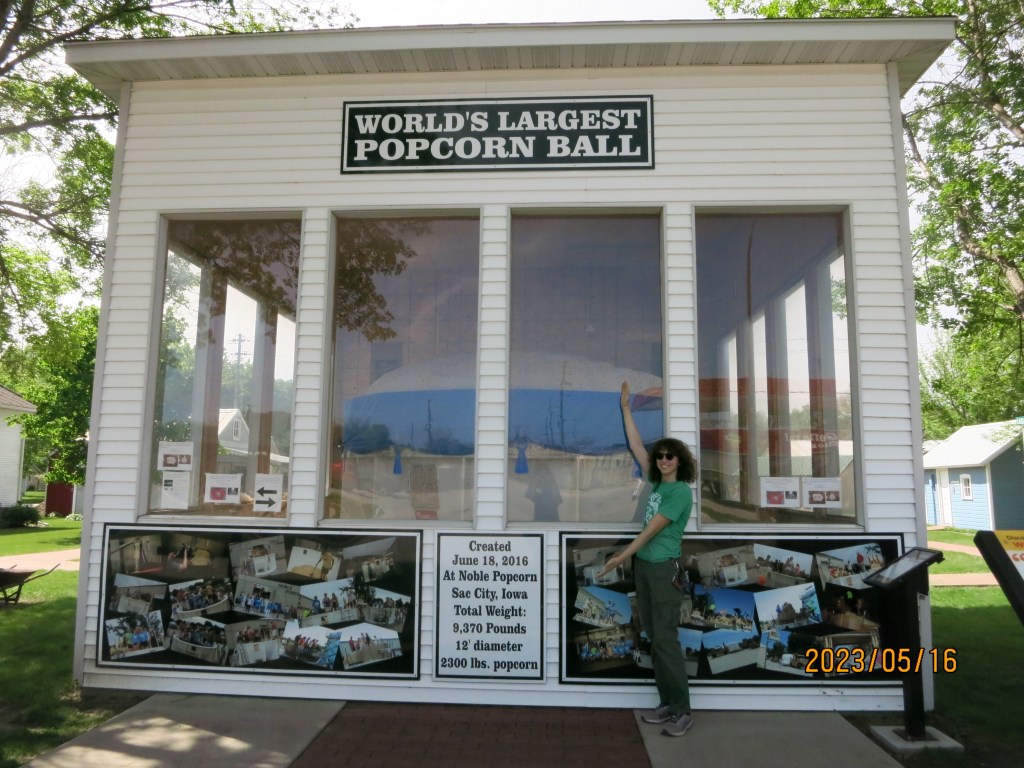 The second day was mostly a trek across the great state of Iowa, which somehow felt longer than the 8 hour drive yesterday. We were reminded of the flatness of western Kansas as we drove 300 miles across the Hawkeye State and were relieved by several travel stops and the world’s largest popcorn ball in Sac City, IA!