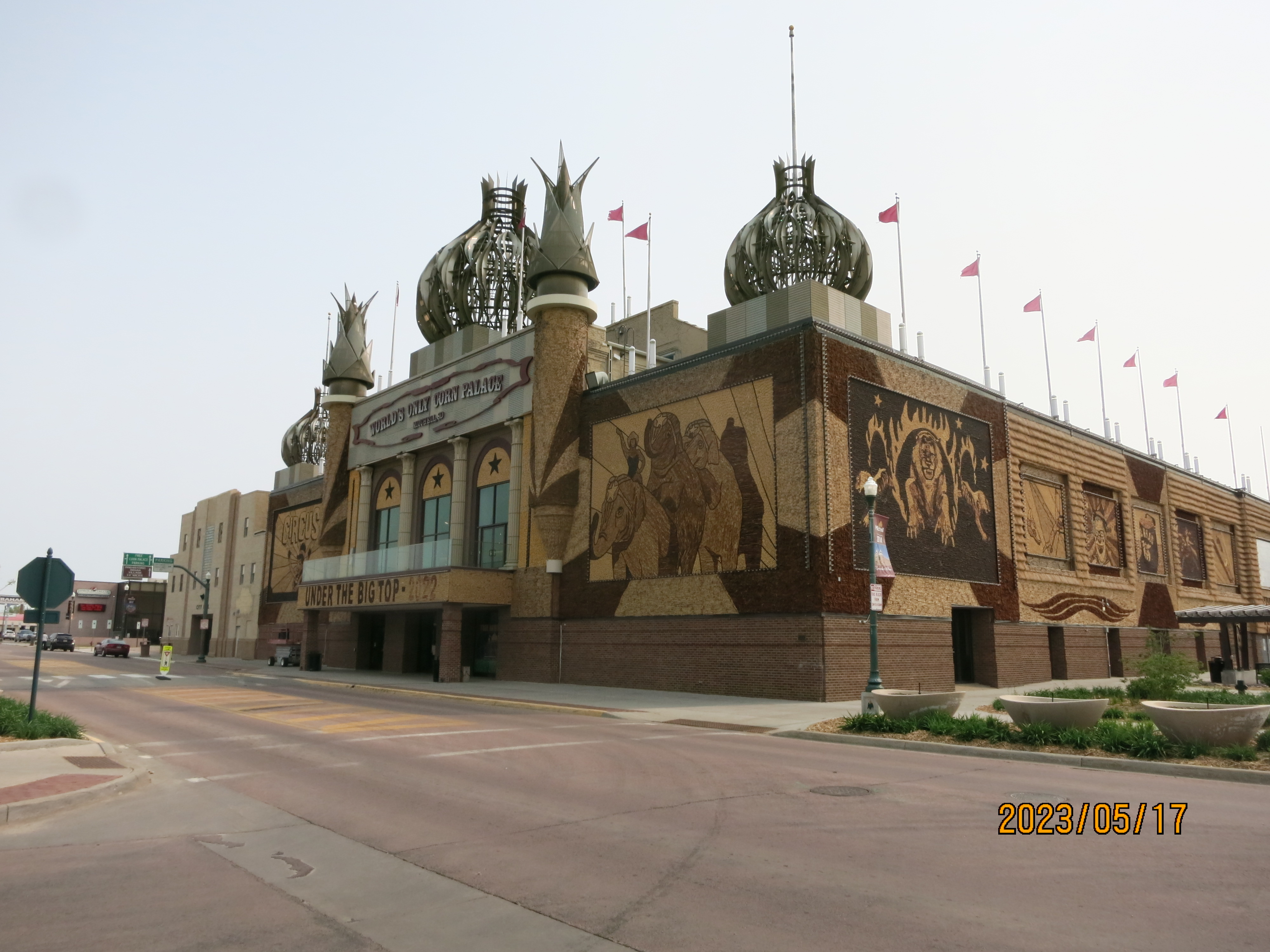 About an hour into our drive we started seeing signs for The World’s Only Corn Palace, which of course we had to stop and see. Johnna thought it was interesting that the town used it as a public place and tourist trap, and I thought it was a pretty neat thing to see out in the middle of nowhere South Dakota. Apparently there have been other corn palaces in the past, but this one is the last that has remained.