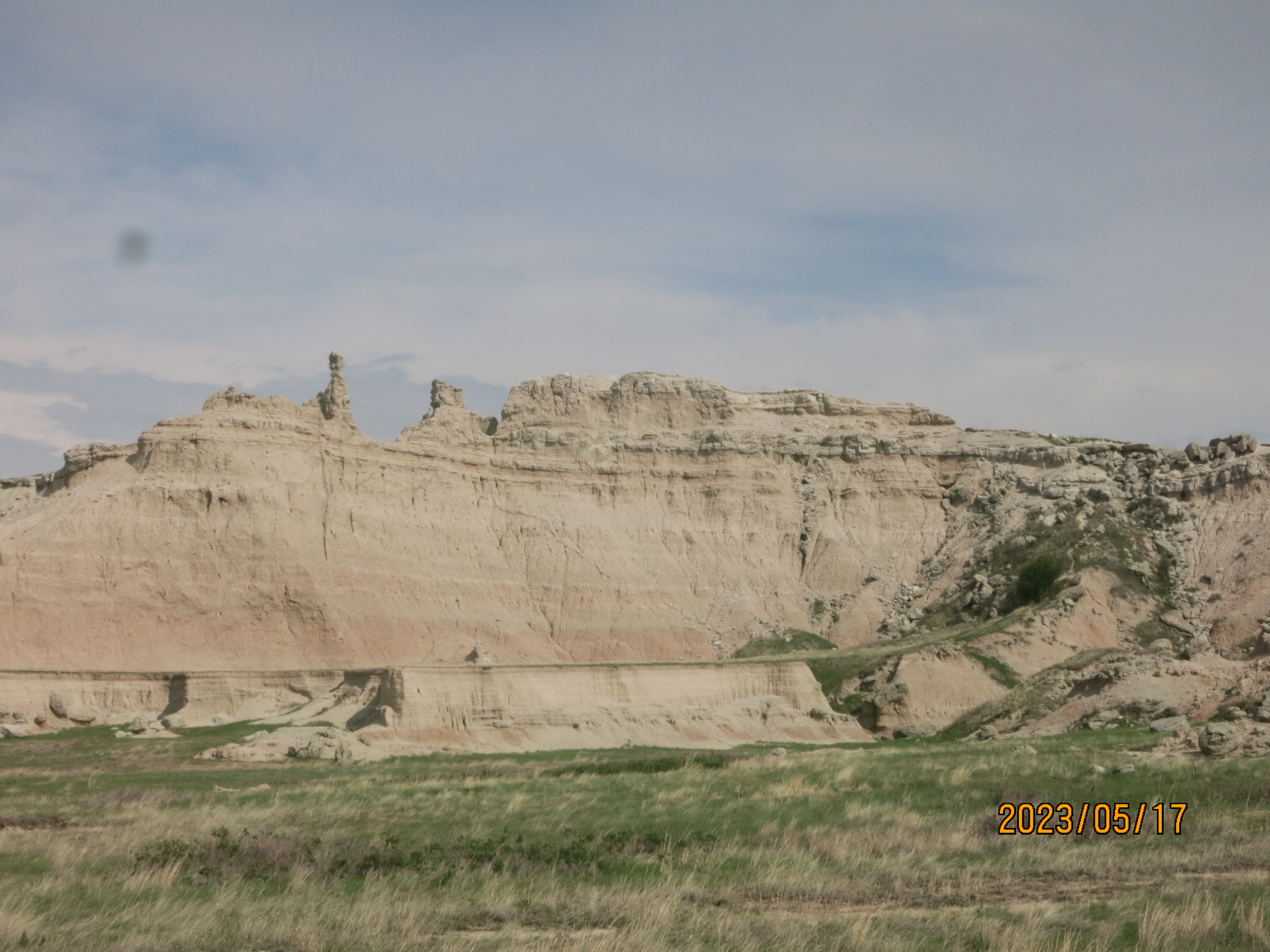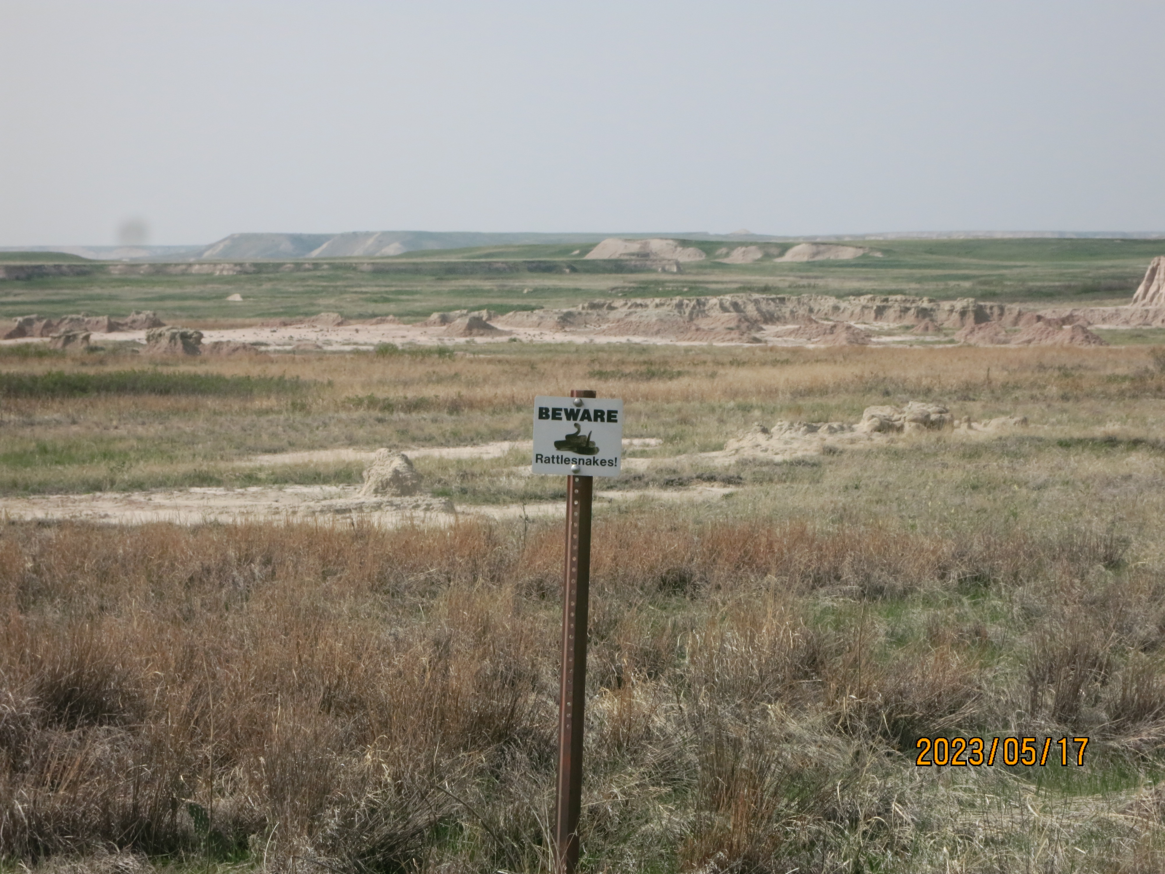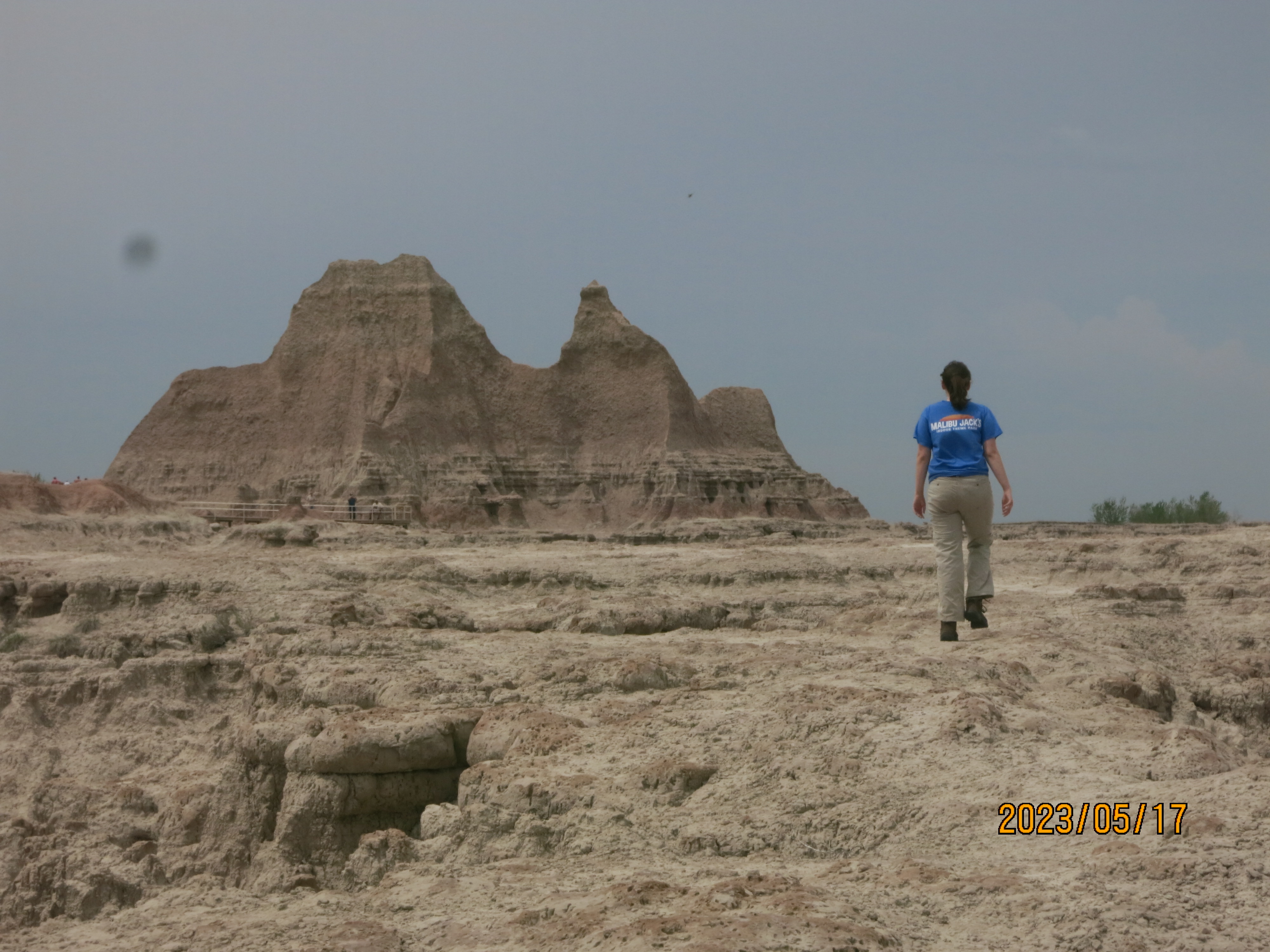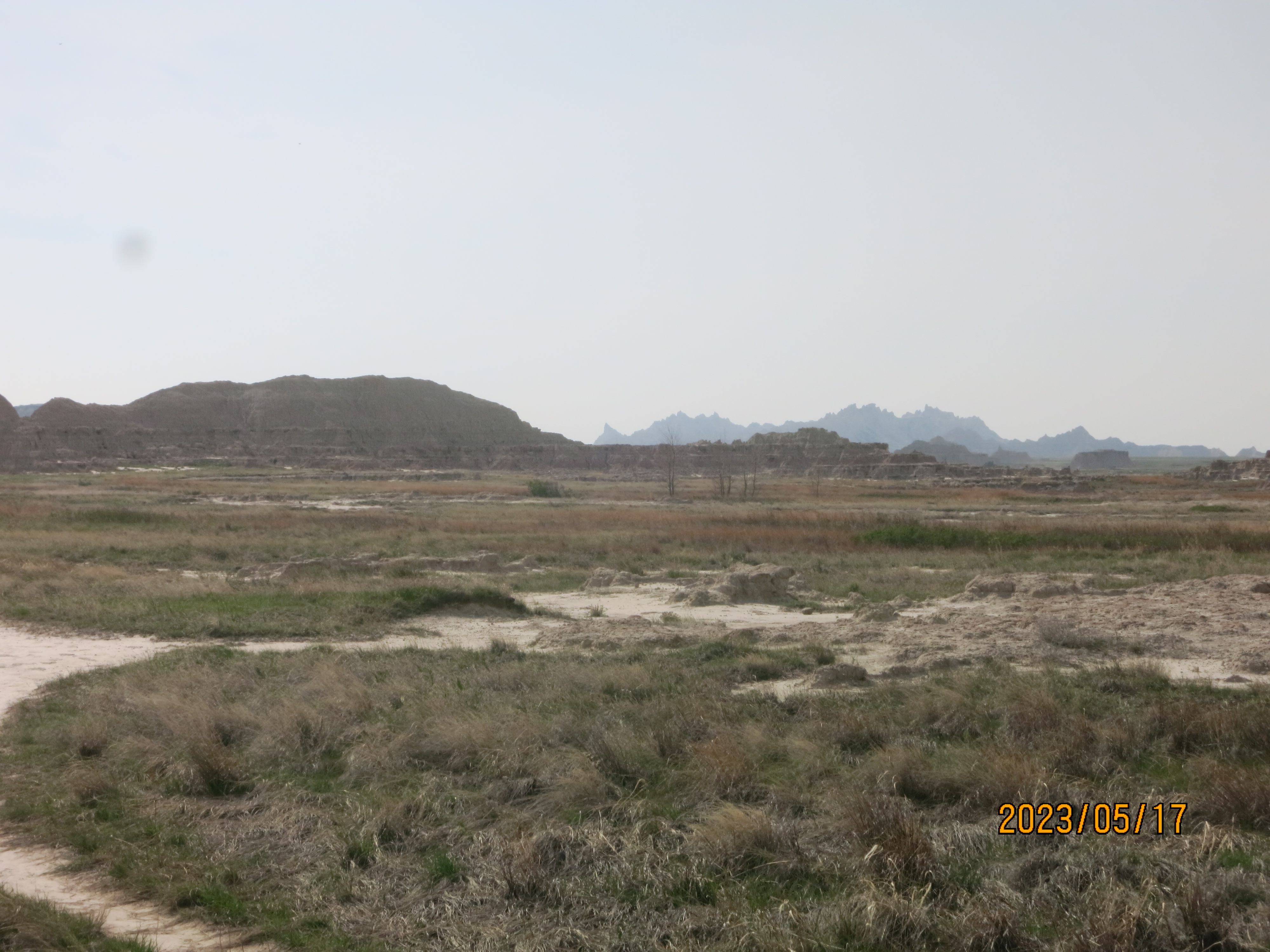 The views this morning in Badlands National Park were obscured by much of the smoke from the Alberta fires, which was disappointing but also offered a unique view of the park – especially with many of the formations disappearing into the haze of the sky.