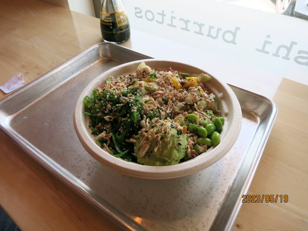 For lunch Johnna and I got poke bowl in the city at a place called Yo Poke, which let you make any poke bowl into a burrito. Neither of us were wanting to eat with our hands so we just got the regular bowls. It was really good though and I got one with a sauce that was very acidic and lemony.