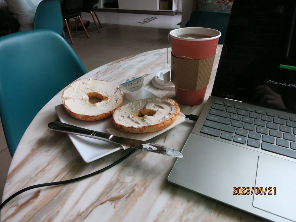 I got up early to go to sight-see in Spokane and was not disappointed though! The service I had at the campground last night was bad again so I had to update this blog from another coffee shop. This one was from Indaba Coffee. I got a white tea and a cream cheese bagel, both of which were very good!