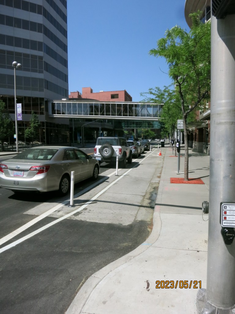 I appreciated that Spokane had infrastructure in place for cyclists – a dedicated bike lane protected by lanes of parked cars. It’s not ideal, but it is definitely a step in the right direction!