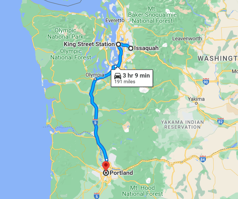 Instead of driving, I ended up taking the train to Portland via the Amtrak Cascades, which runs from Eugene, OR to Vancouver, BC. I did this because I love train travel and because it was cheaper than having to buy gas in Washington at $5.39/gallon.