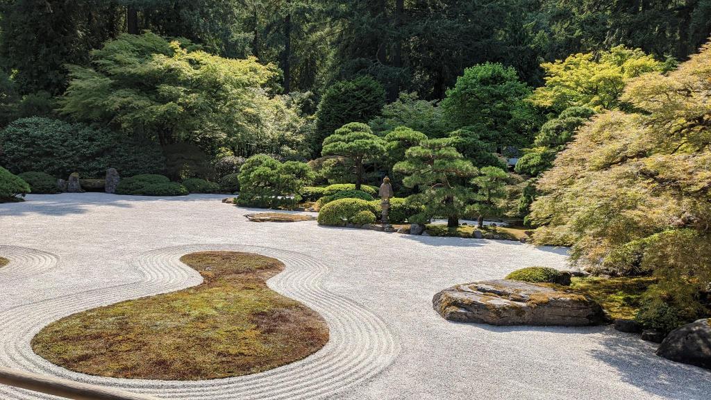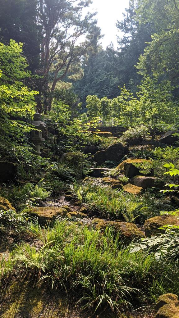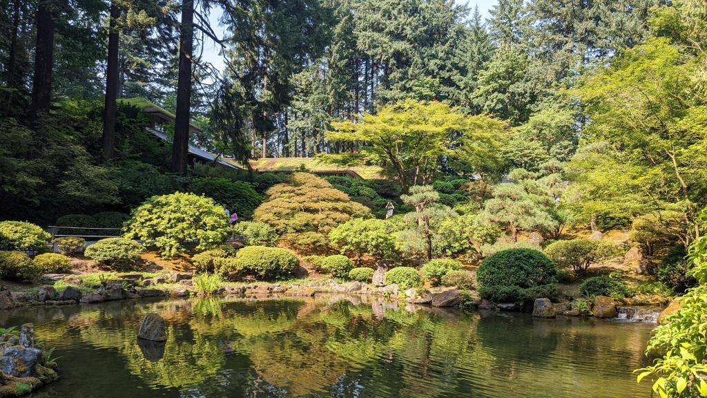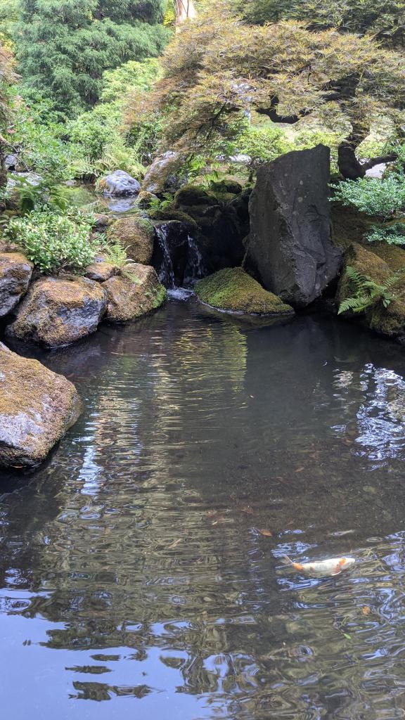 The last thing we did was go to the Portland Japanese Garden, which was really beautiful! When we went it was getting to be later in the evening but it was still pretty busy. They had everything that you would expect from a Japanese garden – a koi pond, a zen gravel garden, bonsai, and even traditional structures fitted together with joints and glue – no nails.