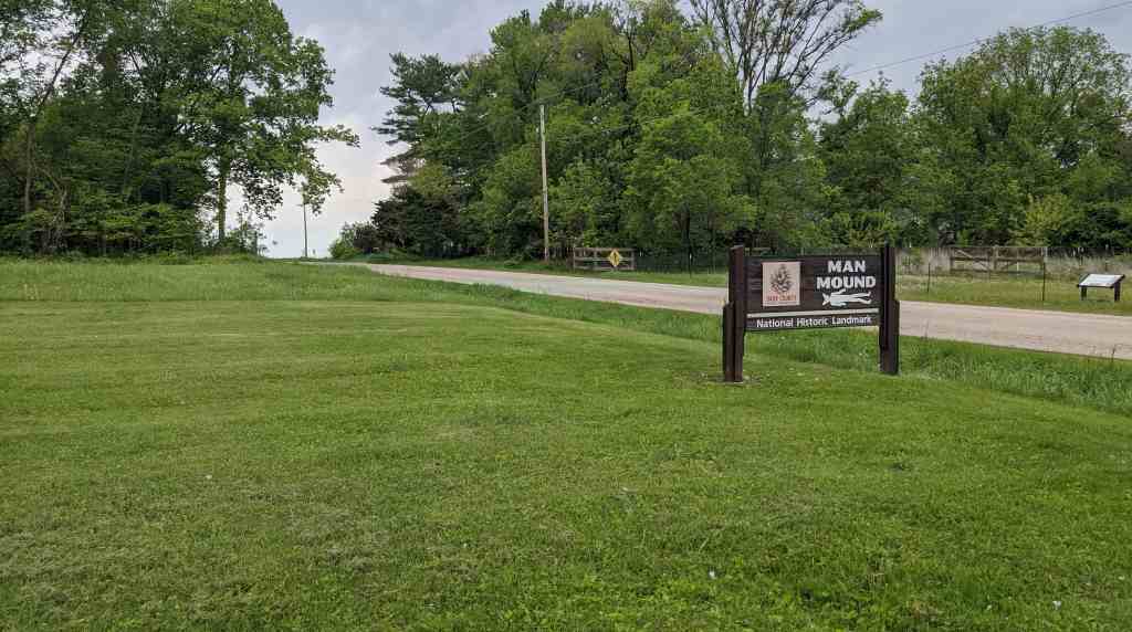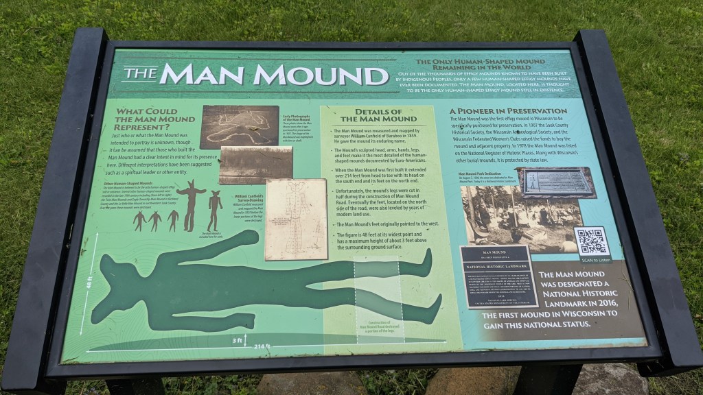 I got a few post cards and then headed out to my second location, which was Man Mound. It is less spectacular than the House on the Rock, but I still think it’s interesting. Essentially it’s an effigy mound in the shape of a person that had its legs cut off when Wisconsin was building its county roads.