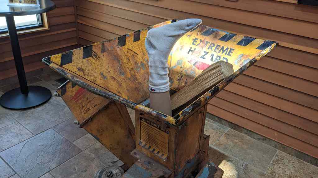 I hit the road and kept driving until I got to Fargo, ND where I stopped to see the real wood chipper prop that was used in the movie Fargo. Last year, you may remember that I made a stop at the Fargo visitor’s center but it was closed. This year it wasn’t and I was able to go inside! It’s pretty nice in there, so if you ever find yourself in Faro, check out the visitor center.