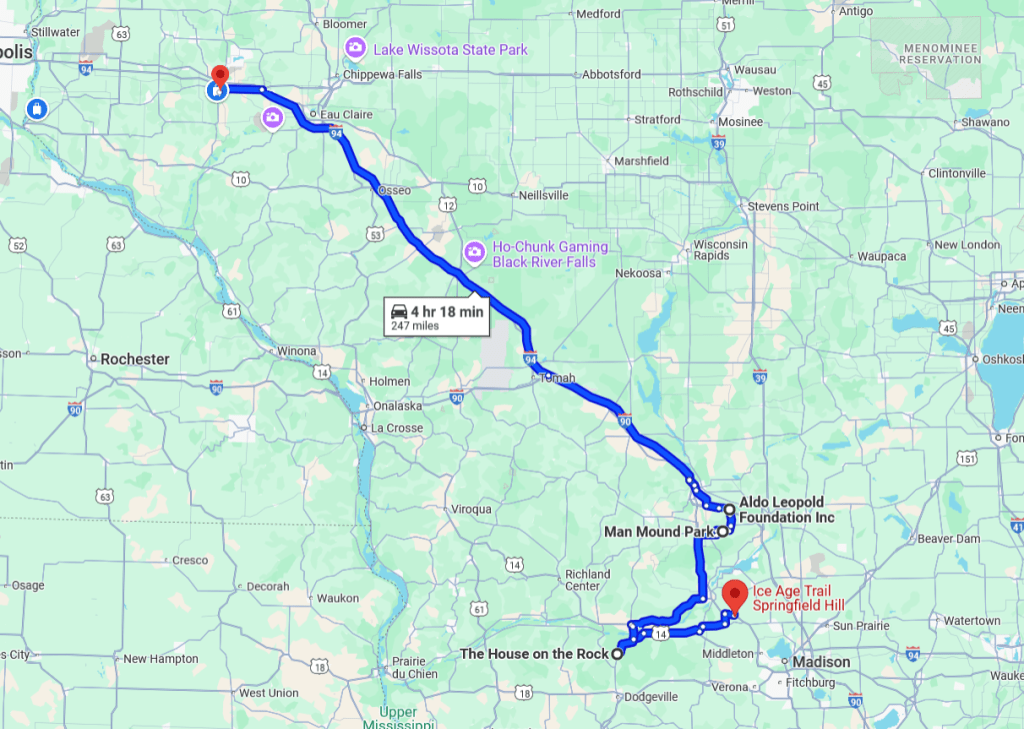- Day 2: Madison, WI -> Menomonie, WI
