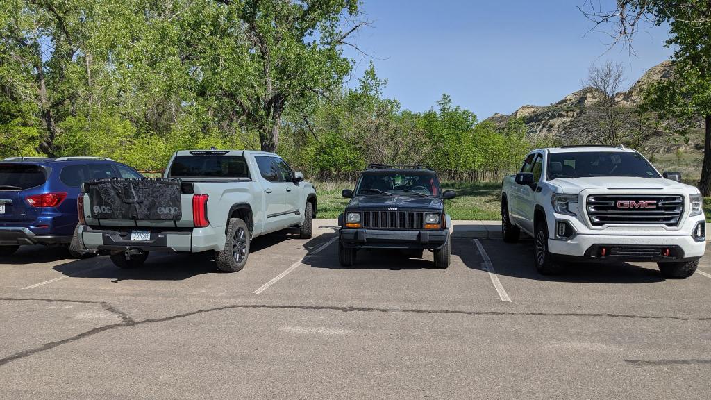 I stopped briefly at the visitor center to get a stamp in my Hobonichi, and as I was walking out I saw something very telling about my Jeep XJ: it’s size. Look at how it compares to modern cars!