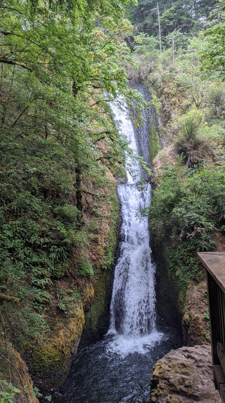 I survived the night at Yale Lake and had breakfast at the beach there. Then I drove to some of the famous waterfalls in the Columbia River Gorge. I went to two: Bridal Veil Falls, and Multnomah Falls.
