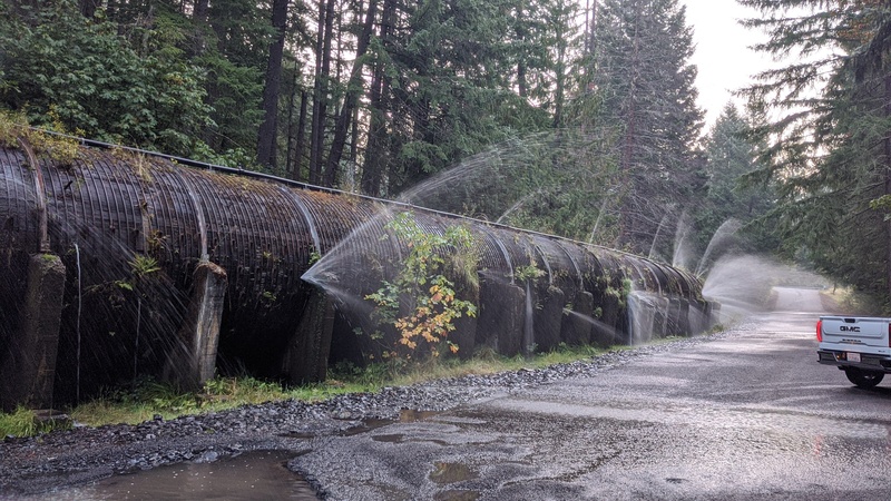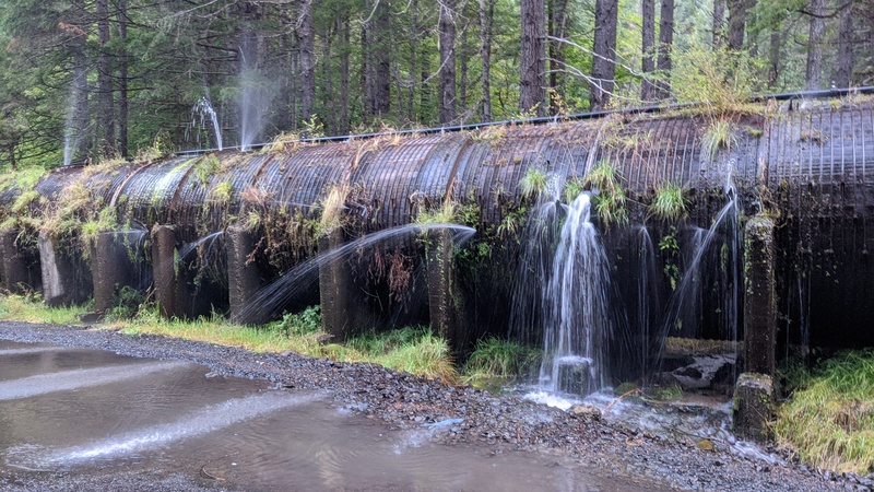 The first thing I had to do this morning was to check out Toketee Falls, which is a really beautiful waterfall that flows through basalt columns on the west side of the cascades. It was a short hike from the parking lot, which was being inundated with water from the redwood pipes that were helping discharge the nearby dam.