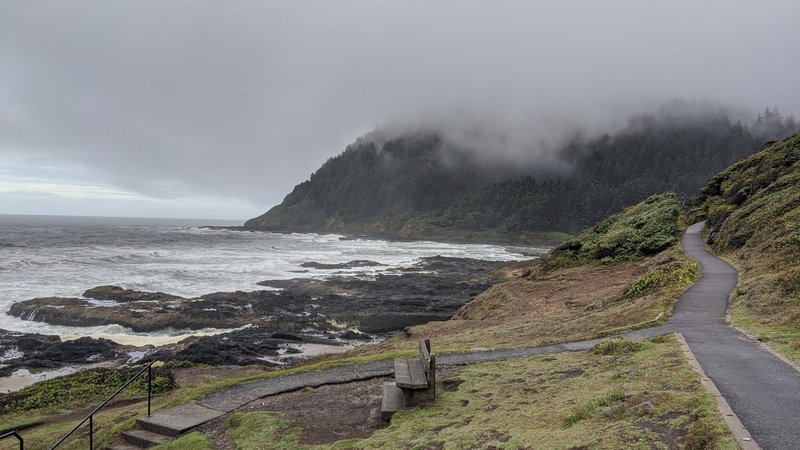 I spent the rest of the day driving until I found a spot to camp for the night, and stopped at a few sites – notably an historic lighthouse, and devils kitchen (one of many devil-themed stops along route 101).