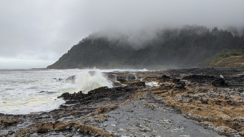 Along the coast, I stopped to check out two super popular stops: Thor’s Well and the Devil’s Punch bowl. I came at just the right tide to see both of these features at their best!