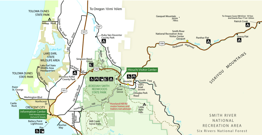 If you’ve never been to the redwoods before, it’s can be kind of confusing since there is not a singular Redwood National Park. Well, there is technically a Redwood National Park, but it’s part of a complex of multiple state parks which make up the Redwood National and State Parks system. So if you type in “redwood park” into your GPS, it’s not going to know where to send you!